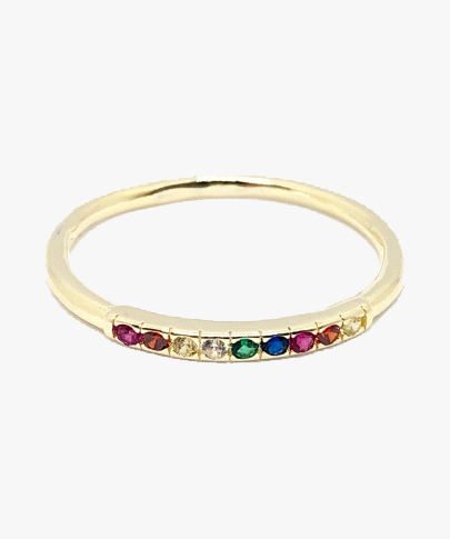 Sortija oro 18k carril de 16 zirconitas rubíSortija oro amarillo de 18k, carril de 16 zirconitas de color rubí.