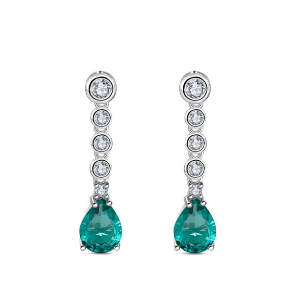 Pendiente de plata con cristal esmeralda verde y zirconitas cierre omegaPendiente de plata con cristal esmeralda verde y zirconitas cierre omega