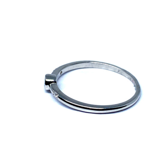 Anillo de plata de primera ley tipo solitario con una zirconita blanca.