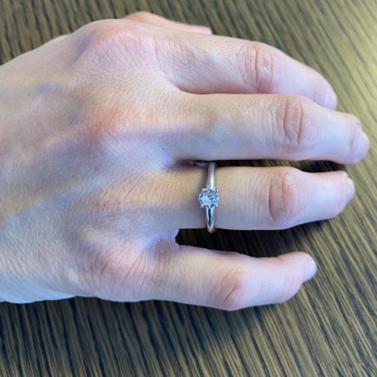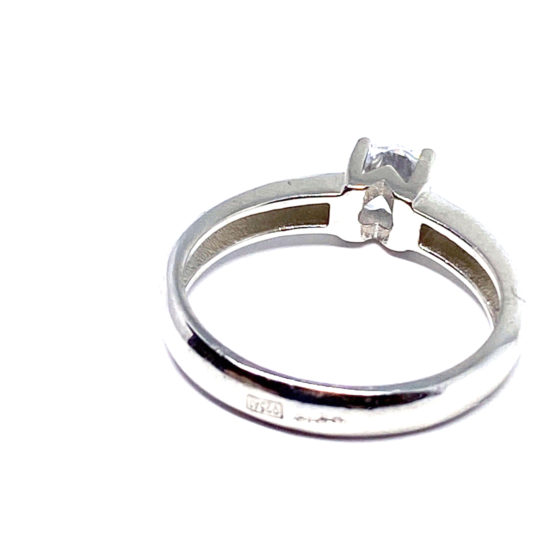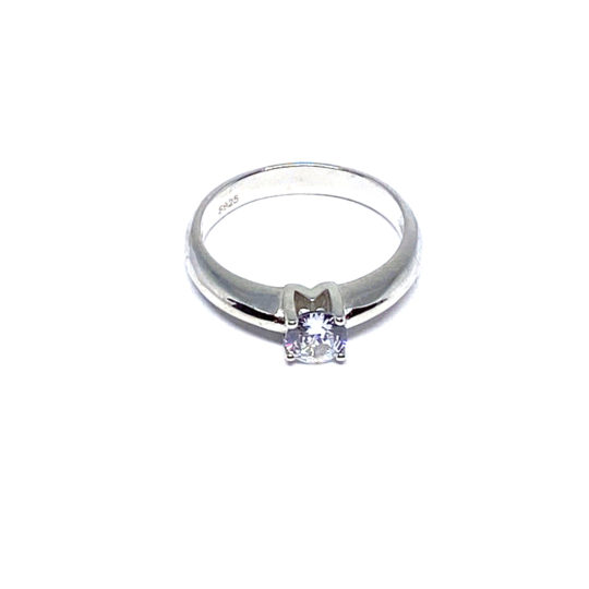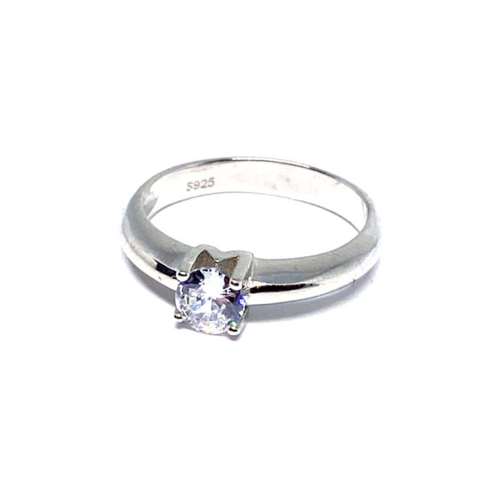 Anillo de plata de primera ley, tipo solitario con una zirconita engastada en cuatro garras en la zona central.