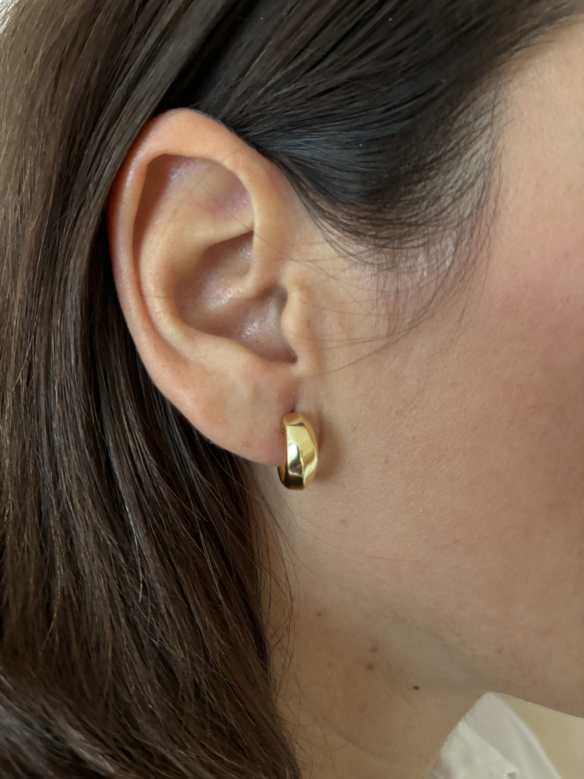 Pendiente de plata chapada semi rizado brillo con cierre presión.