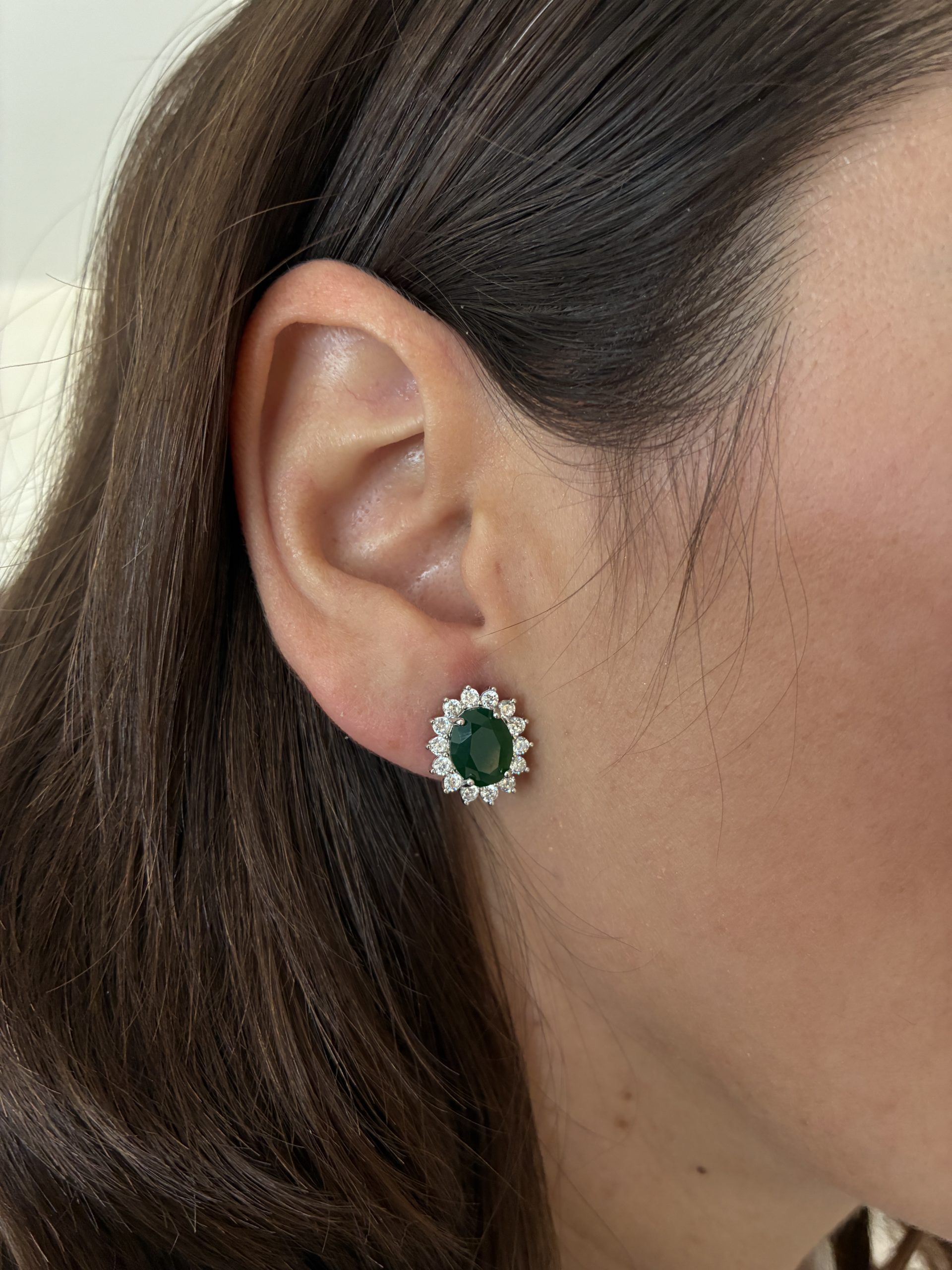 Pendiente de plata con cristal esmeralda verde y zirconitas cierre omega
