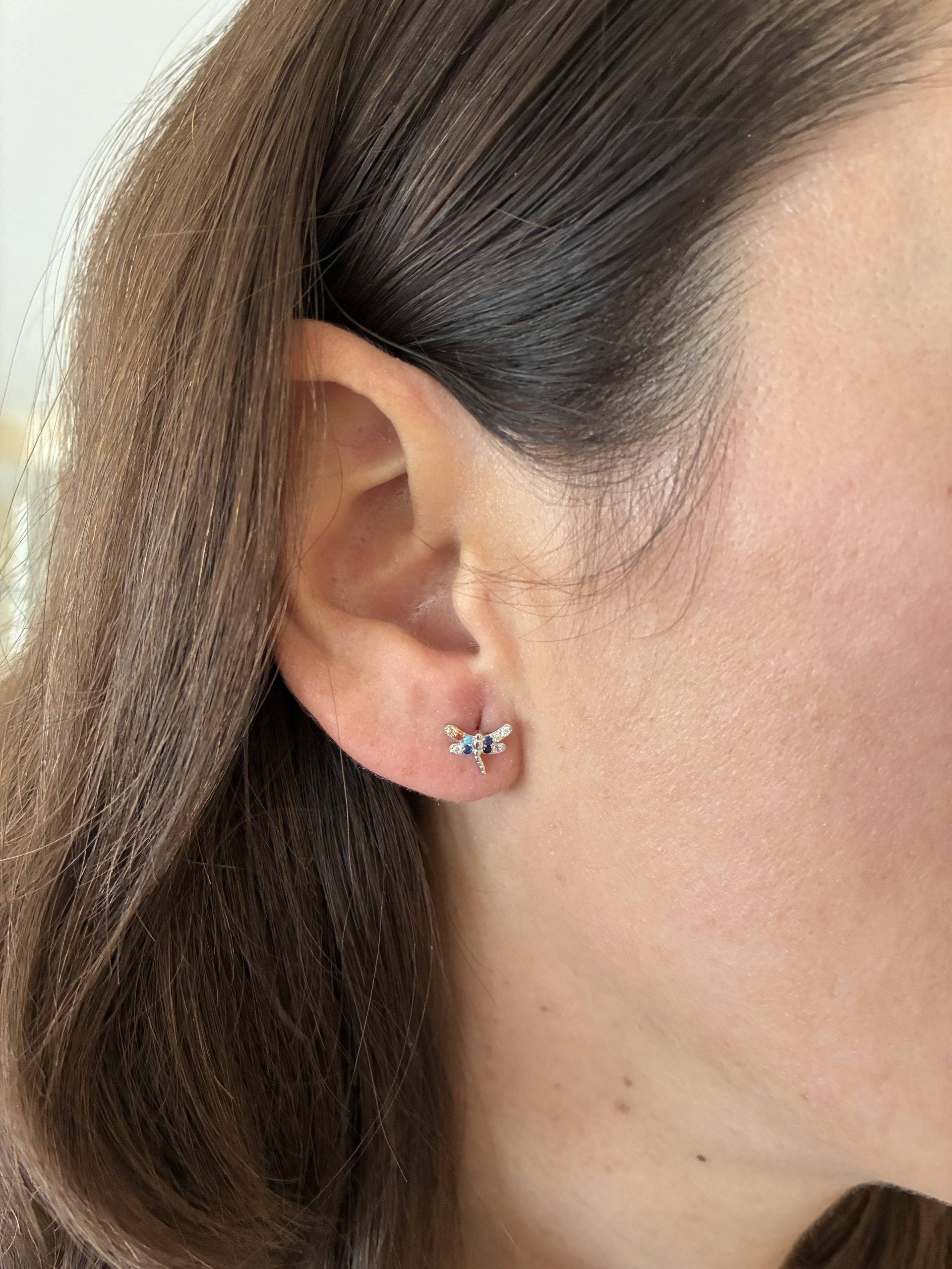 Pendiente de plata con libélula y zirconitas de colores cierre presión